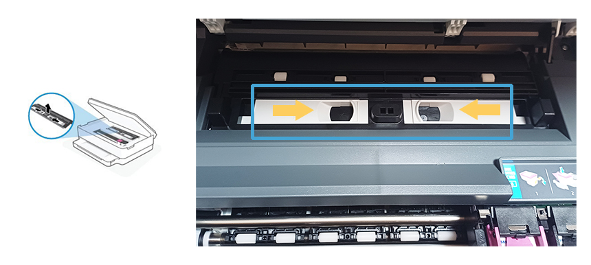 이와 같은 용지 걸림을 해결 내용은 프린트 사용설명서에서도 볼 수 있지만 프린트기 내부에 설명되어 있기도 하다.