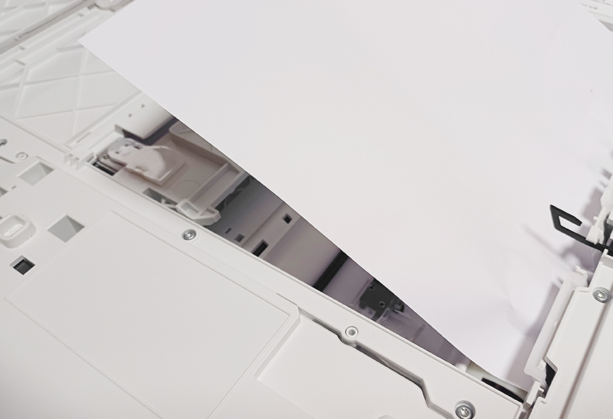 걸린 용지는 억지로 무리하게 제거하려고 하면 안 되지만 만약 걸린 게 심하지 않다면 SL-J1780W 프린트 바닥 아래에서 걸린 용지를 살짝 잡아당겨 제거해 볼 수도 있다.