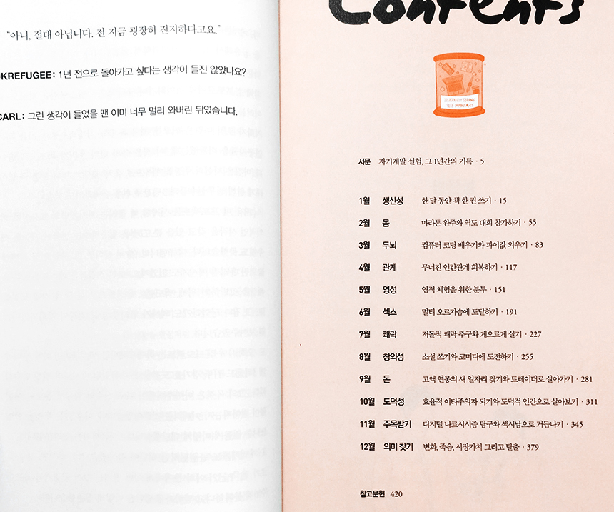그러므로 책이 흥미롭긴 한데 이들이 실행한 자기계발의 목록이 나에게는 크게 흥미롭지 않아서 재미없게 읽고 마무리 된 것이라고 할 수 있겠다. 진실로 그렇기도 하다.