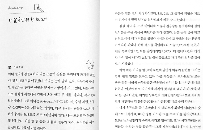 그럼에도 다른 이의 자기계발이라도 계속 탐색하게 되는 건 항상 마음속에는 자신의 인생을 바꾸고 싶은 욕망이 있기 때문인지 모르겠지만 말이다.