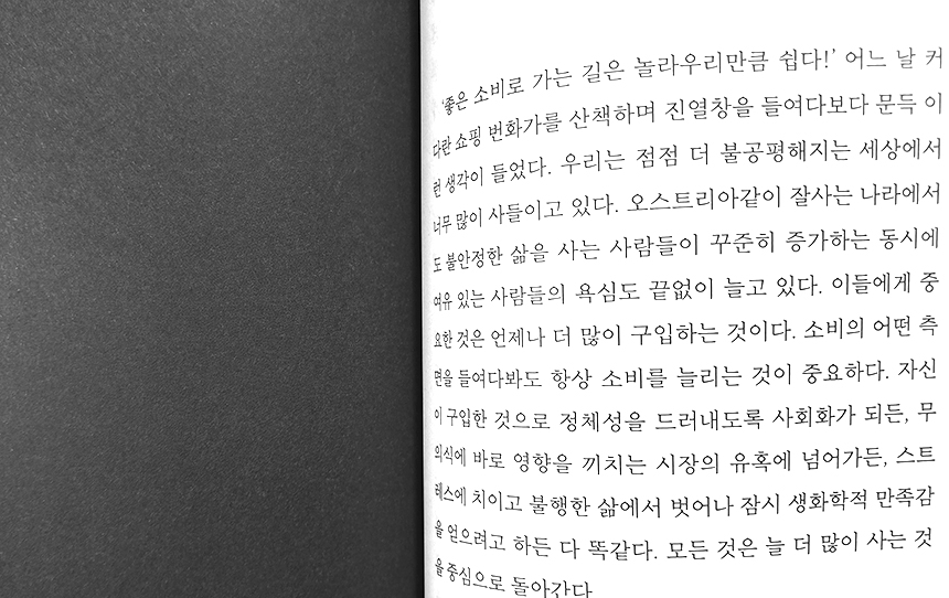 그렇지만 아무래도 소비를 다루다 보니 읽다 보면 물욕을 줄이거나 소비를 줄일 수 있을 것 같은 기분이 든다.